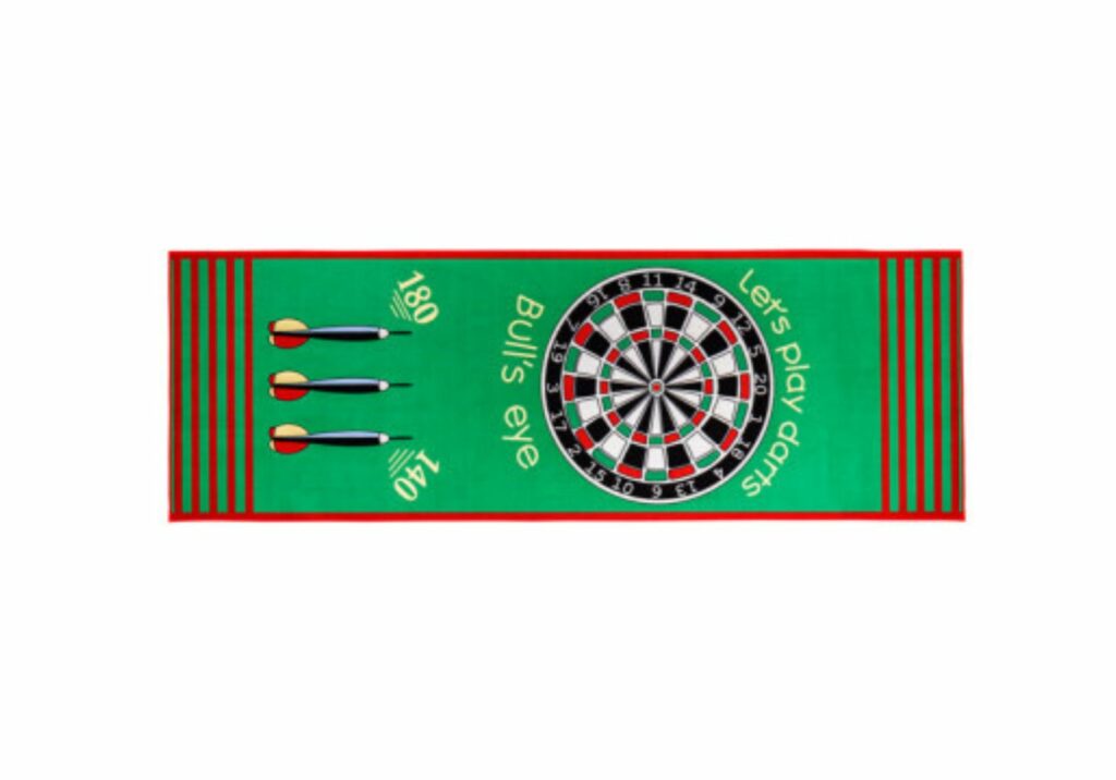 Dieser Dartteppich 79×237 cm bringt echtes Turniergefühl in Ihr Zuhause – rutschfest, robust und mit markierter Wurflinie für präzises Spielen.