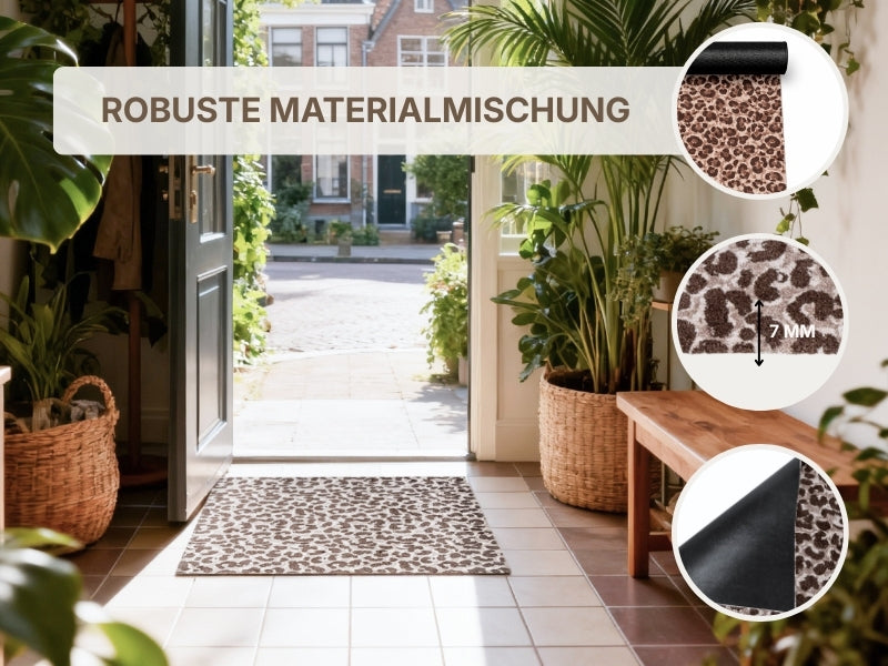 Die LUX Safari Chic Fußmatte kombiniert ein ausdrucksstarkes Design mit hohem praktischem Nutzen. Das elegante, tierisch inspirierte Muster in weichen, erdigen Farbtönen sorgt für eine warme und luxuriöse Ausstrahlung und macht jeden Eingangsbereich, Flur oder Hauswirtschaftsraum sofort einladend. Die Matte fügt sich harmonisch in unterschiedlichste Wohnstile ein – von modern über natürlich bis zeitgemäß.