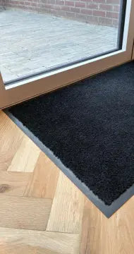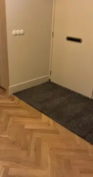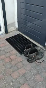 Wir empfehlen eine Fußmatte, auf der beide Füße Platz finden. So werden Schmutz und Feuchtigkeit am besten aufgefangen.