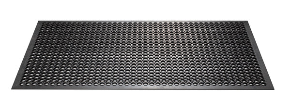 Wir empfehlen eine Fußmatte, auf der beide Füße Platz finden. So werden Schmutz und Feuchtigkeit am besten aufgefangen.